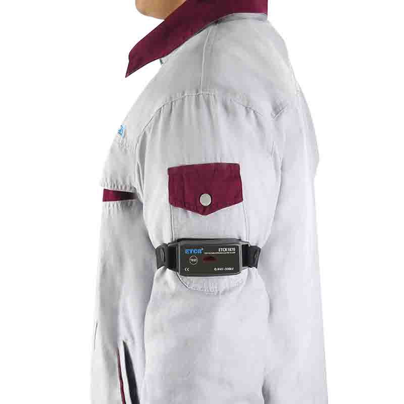 ETCR1870手臂式近電報警器又稱穿戴式近電報警器,為近電作業(yè)人員提供一款安全、實用、便捷的新型高壓報警裝置。帶電作業(yè)時,操作人員與帶電體的安全距離不能低于相關(guān)工作規(guī)程的要求。作業(yè)人員佩戴本報警器后,在接近高壓帶電體一定距離時,根據(jù)電壓等級相應(yīng)的安全距離,報警器發(fā)出聲光報警,提醒電氣工作人員注意安全,避免發(fā)生高壓觸電事故。