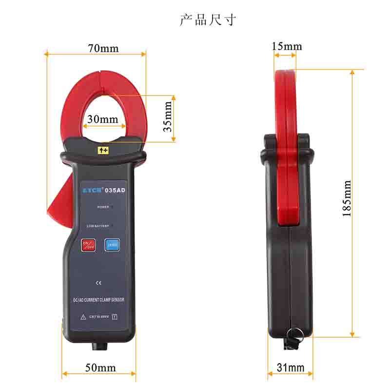 ETCR035AD | ![]() | 量程: 0.0A~1000A AC/DC 精度等級(jí):2 相位誤差:≤3° 工作頻率:DC~400Hz | 1mV/1A | 30mm×35mm | 122mm×70mm×33mm | 180g |