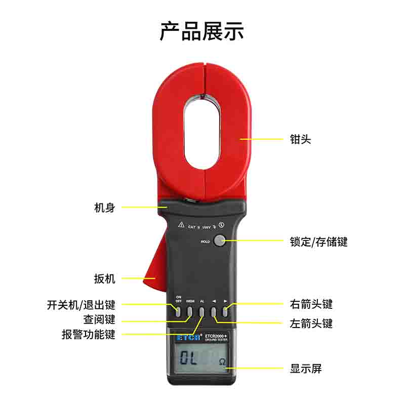 ETCR2000+鉗形接地電阻儀能測量出用傳統方法無法測量的接地故障,能應用于傳統方法無法測量的場合,因為鉗形接地電阻儀測量的是接地體電阻和接地引線電阻的綜合值。