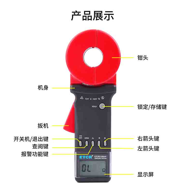 ETCR2100A+鉗形接地電阻儀又稱鉗形接地電阻表、接地電阻儀、回路電阻測試儀、單鉗接地電阻測試儀、環路電阻測試儀,用于接地電阻、回路電阻測量、接地故障判斷。在測量有回路的接地系統時,不需斷開接地引下線,不需輔助接地極,安全快速、使用簡便。鉗形接地電阻儀廣泛應用于電力、電信、氣象、油田、建筑及工業電氣設備等的接地電阻測量、回路電阻測量。
