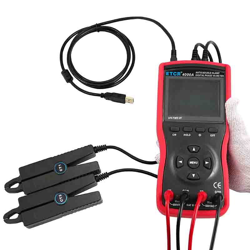 ETCR4000數字雙鉗相位伏安表 | Φ8mm | 0~360° | 0.00V~600V | 0.0mA~20.0A | -- | |