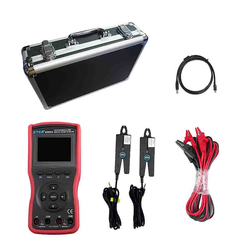 ETCR4000A智能型雙鉗數字相位伏安表采用2.8寸TFT彩色液晶屏,所有參數同屏顯示,一目了然。是對機械旋鈕式相位伏安表的全面升級,減少了操作的繁瑣性,降低了誤操作的可能性,測試精度高、使用方便。儀表配有的防振防滑高絕緣護套,USB通訊接口,可存儲1200組數據,通過系統軟件上傳所存數據到電腦,實現在線實時監測與歷史查詢,讀取、保存、報表、打印歷史數據等。