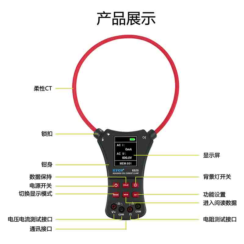 ETCR6920柔性電流鉗表又名柔性線圈鉗表、超大電流鉗表、羅氏線圈電流鉗表、洛氏線圈電流鉗表,用于交流電流測(cè)試、電壓測(cè)試、電阻測(cè)試、通斷測(cè)試。柔性線圈無任何裸露金屬導(dǎo)體,體積小、重量輕、柔軟靈活,特別適合大尺寸導(dǎo)體、狹窄環(huán)境和排線密集的場(chǎng)所,可用于信號(hào)嚴(yán)重畸變的工業(yè)環(huán)境電流測(cè)試。廣泛適用于電力、通信、氣象、鐵路、油田、建筑、計(jì)量、科研教學(xué)單位、工礦企業(yè)等領(lǐng)域。