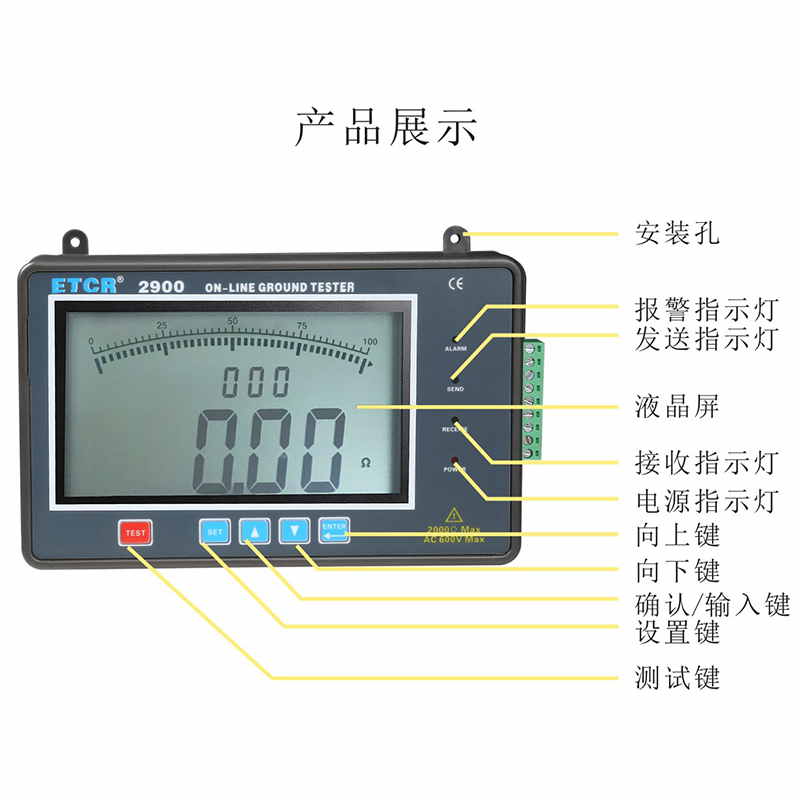 ETCR2900接地電阻在線測試儀(地樁式) | 0.01Ω~2000Ω | AC 0V~600V | RS485通訊 | 可設置報警閾值 | |