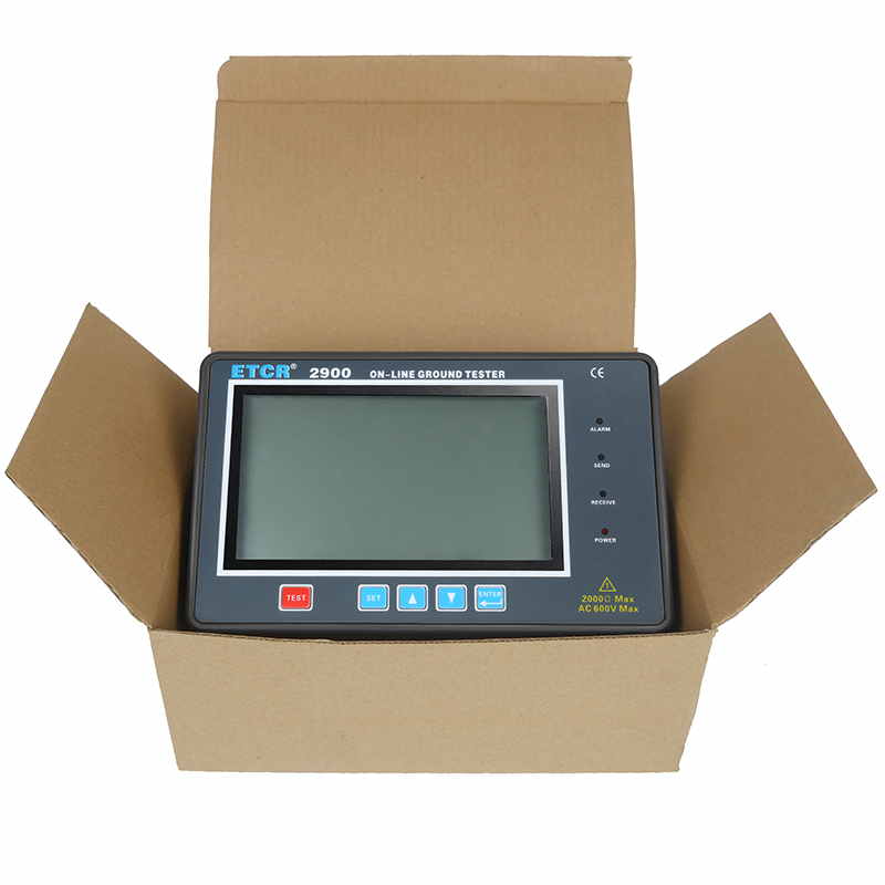 ETCR2900B在線接地電阻測試儀帶有LCD顯示,可在現場查看接地電阻值,可以通過儀表按鍵設置報警臨界值,可設置監測間隔時間,并具有聲光報警指示。