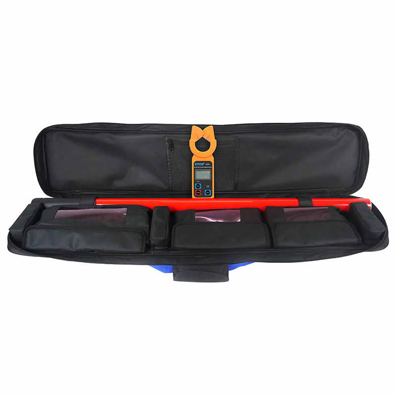 ETCR9000高低壓鉗形電流表又稱架空線路負載測試儀,高壓負載測試儀、高空電流測試儀、高壓電流遙測儀,用于測量架空線路高低壓電流。儀表由專用鉗形電流表配高壓絕緣桿組成。若不使用絕緣桿,還可以當作高精度低壓鉗形電流表使用。廣泛應用于變電站﹑發電廠﹑工礦企業以及檢測站﹑電工維修部門進行電流檢測和野外電工作業等。