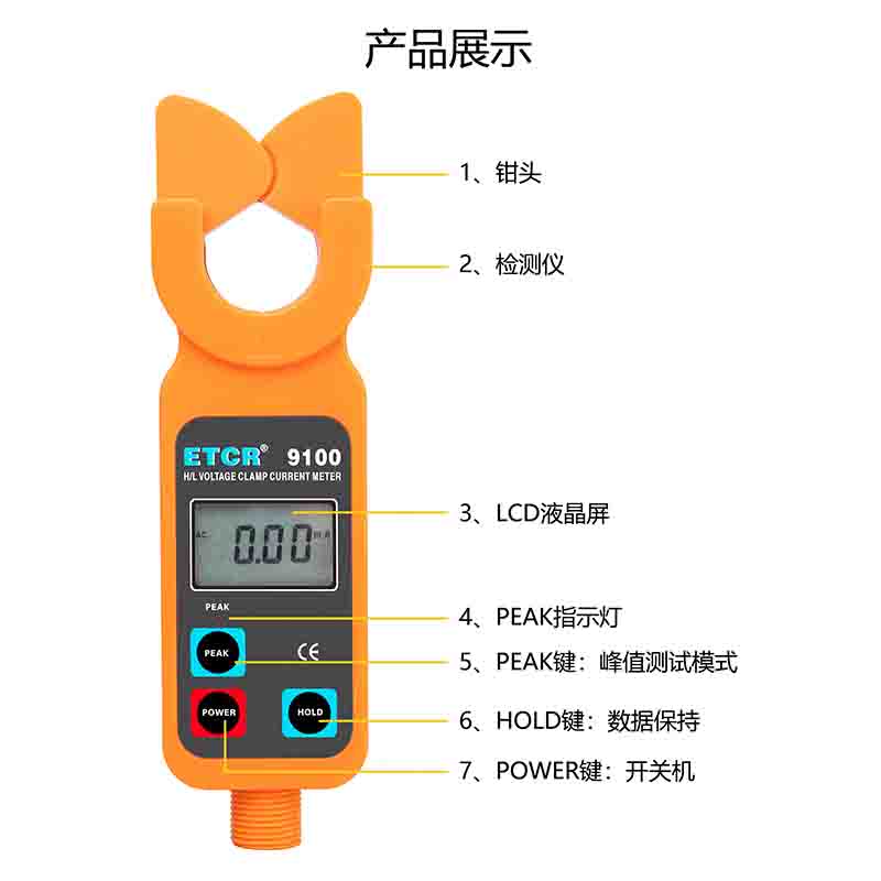 ETCR9100高低壓鉗形電流表鉗頭與引導(dǎo)區(qū)創(chuàng)新的一體化設(shè)計(jì),通過按壓或退拔絕緣桿能快速方便鉗夾或撤離被測(cè)導(dǎo)線,安全快捷。儀表還具有峰值保持、數(shù)據(jù)保持、數(shù)據(jù)存儲(chǔ)等功能。