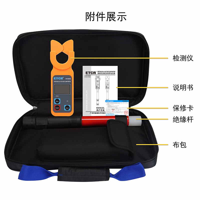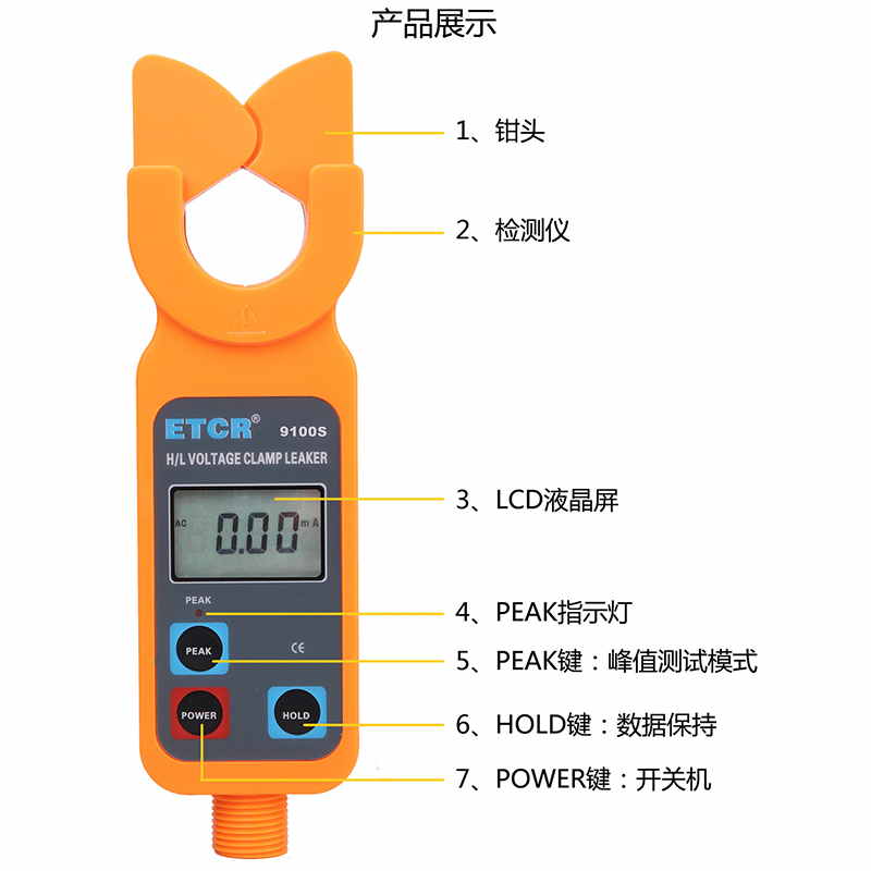 ETCR9100S便攜式高低壓鉗形電流表鉗頭與引導區創新的一體化設計,通過按壓或退拔絕緣桿能快速方便鉗夾或撤離被測導線,安全快捷。儀表還具有峰值保持、數據保持、數據存儲等功能。