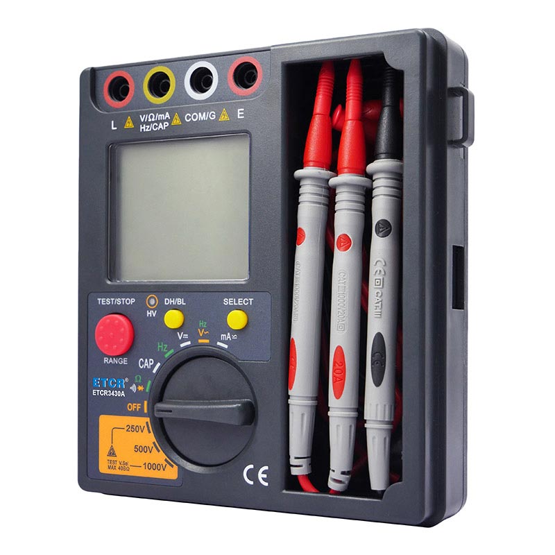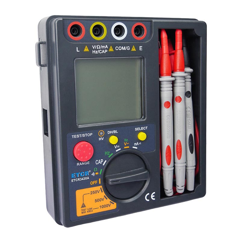 ETCR3430A高壓絕緣電阻萬用表 | 250V/500V/1000V | 0.25MΩ~10GΩ | 1mA MAX | DC:0V~1000V | AC:0V~700V | 0nF~40mF | |
