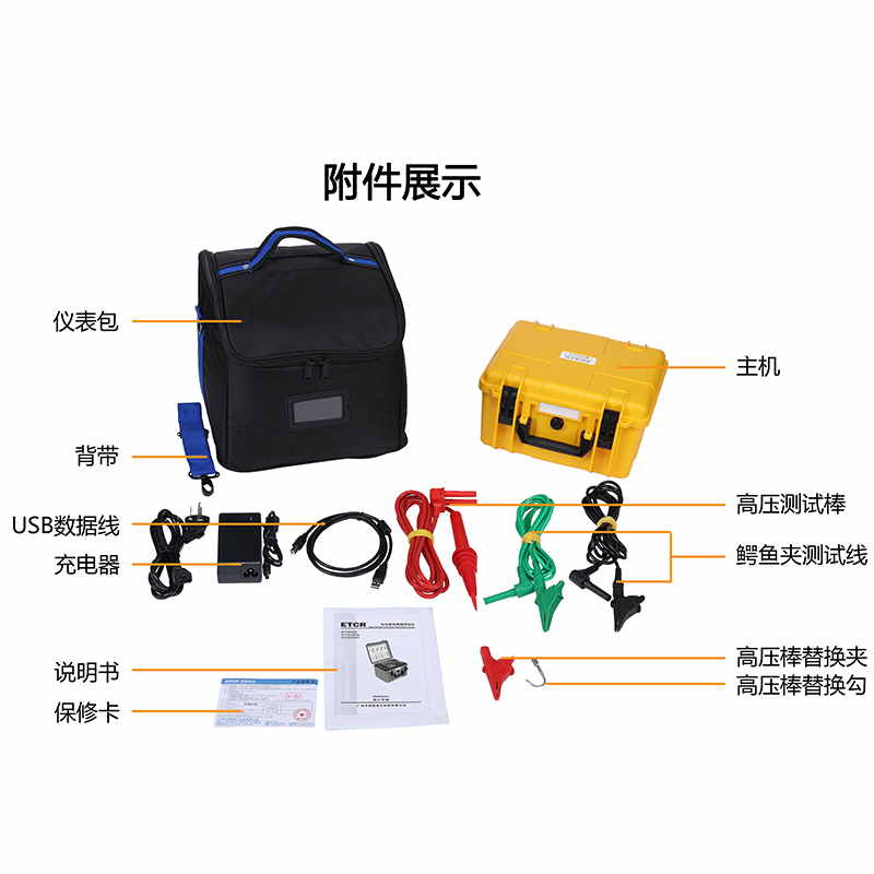 儀表的測試計時器自動記錄測試時間、存儲含有日期時間的測試結(jié)果,觸摸屏可以非常方便的查閱記錄的歷史數(shù)據(jù),完全隔離的USB接口和藍牙通信可將測試數(shù)據(jù)安全的上傳到PC機或手機,供用戶進行數(shù)據(jù)分析。儀表配置帶有雙層絕緣及屏蔽層的測試線,高壓棒配有可更換的鱷魚夾及鉤子,可適應各種測試場所。儀表采用堅固的雙層外殼結(jié)構(gòu),儀表外箱防護等級IP65,能防止運輸存儲過程中水分灰塵的侵入及防止撞擊有效保護儀表。