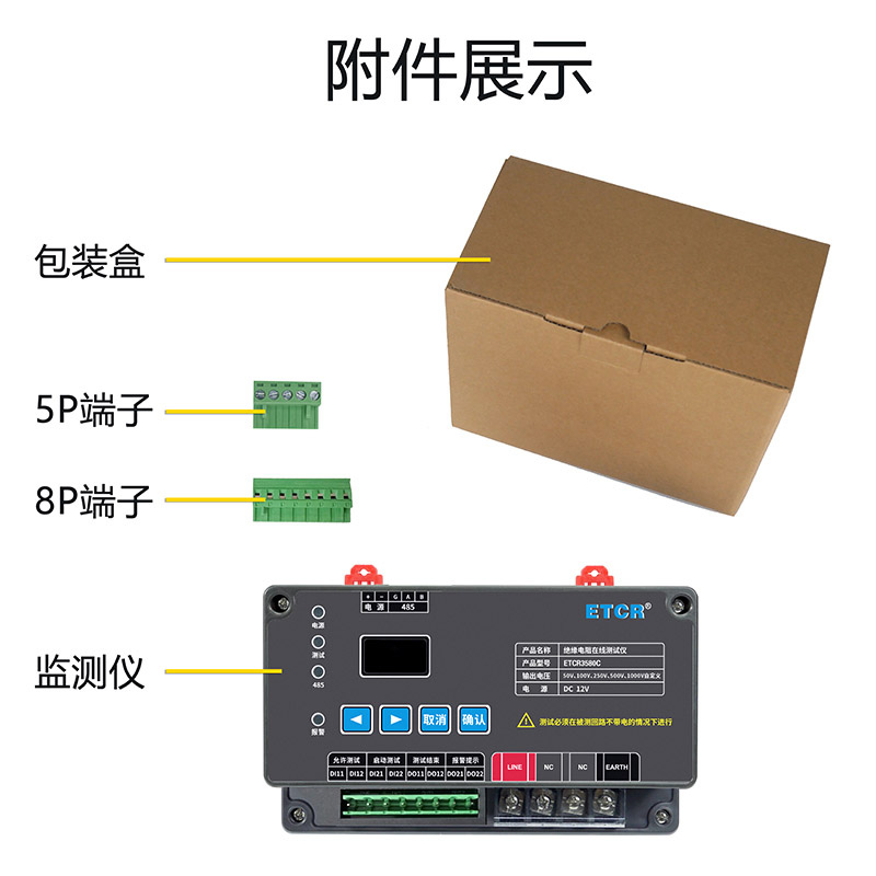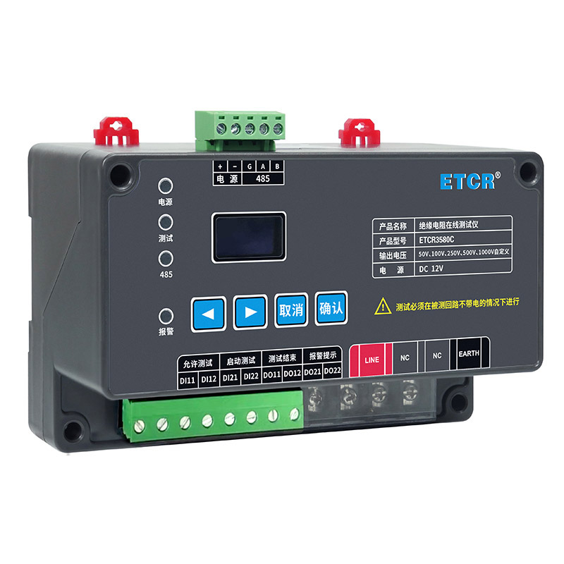 ETCR3580C絕緣電阻在線監(jiān)測(cè)儀用于在線監(jiān)測(cè)電纜、電機(jī)、開(kāi)關(guān)、電器等各種電器設(shè)備及絕緣材料的絕緣電阻值。儀器可監(jiān)測(cè)1個(gè)回路的絕緣電阻值,儀器帶有RS485接口提供MODBS通信協(xié)議,可上傳輸出電壓,絕緣電阻值等數(shù)據(jù),供用戶二次開(kāi)發(fā)應(yīng)用,帶有干結(jié)點(diǎn)信號(hào),可控制設(shè)備測(cè)試和報(bào)警信號(hào)輸出。自帶聲光報(bào)警功能。實(shí)現(xiàn)對(duì)絕緣電阻的實(shí)時(shí)在線監(jiān)測(cè)。