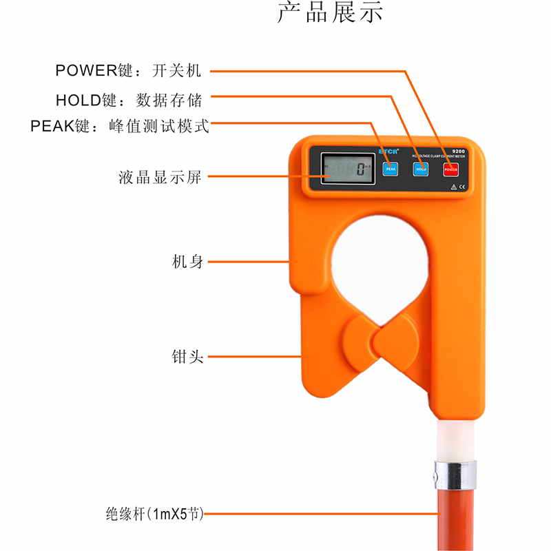 ETCR9200大口徑高低壓鉗形電流表又稱架空線路負載測試儀,高壓負載測試儀、高空電流測試儀、高壓電流遙測儀,用于測量架空線路高低壓電流。儀表由專用鉗形電流表配高壓絕緣桿組成。若不使用絕緣桿,還可以當作高精度低壓鉗形電流表使用。廣泛應用于變電站﹑發電廠﹑工礦企業以及檢測站﹑電工維修部門進行電流檢測和野外電工作業等。