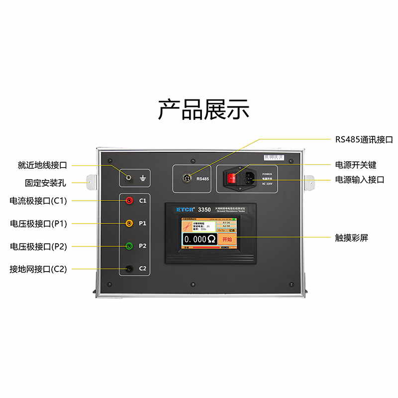 ETCR3350大型地網接地電阻在線監測儀具有存儲功能、時鐘功能,自動存儲含有日期時間的測試結果1000組,儀器具有支持安卓系統的藍牙通訊功能。監測儀具有RS485通訊,用戶可以自行組建成有線網絡系統或無線網絡系統實現遠程在線監測大地網接地系統。