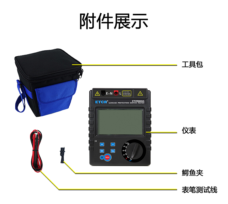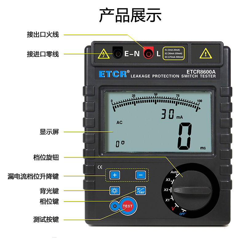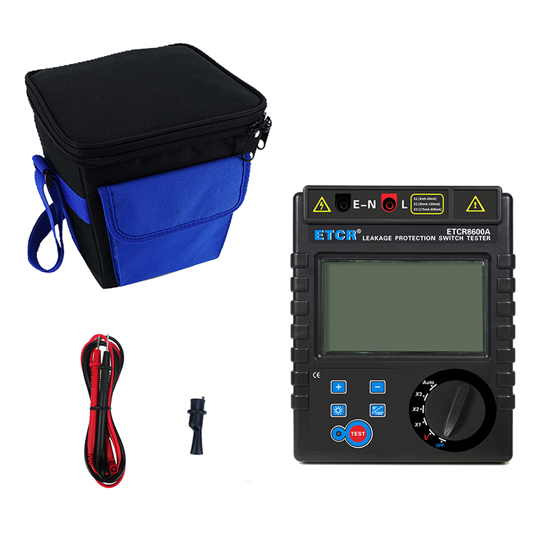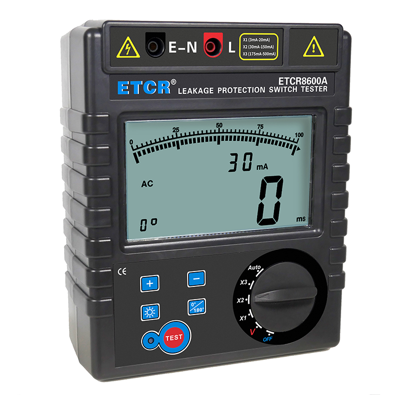 ETCR8600A漏電保護器測試儀 | 3mA~500mA,十八檔 | 0ms~999ms | AC 0~600V | 大LCD屏 | 干電池 | |