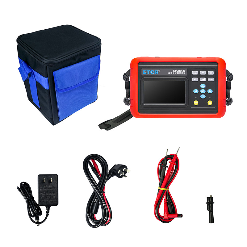 ETCR8640漏電保護器測試儀采用4.3寸彩屏。輸出電流、動作時間、電池電量、相位等同屏顯示,具有自動關機、相位選擇、背光選擇等功能,儀表操作簡便,精度高、體積小、重量輕、外觀精致,便于攜帶,是各種漏電保護器現場或室內檢測的理想工具。
