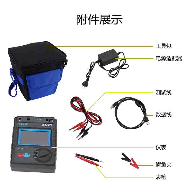 ETCR3800B智能型防雷元件測試儀采用觸摸彩屏中文界面,功能直達(dá)、一鍵測量、操作簡易快捷,用戶無需費(fèi)力記憶操作方法,點(diǎn)擊屏幕的“HELP”即可彈出操作方法,有效指引用戶操作儀表。同時儀表采用大容量可充電鋰電池、具有數(shù)據(jù)存儲功能,可自動存儲含有日期時間的測試結(jié)果3000組、觸摸屏方便用戶查閱歷史記錄、USB數(shù)據(jù)上傳導(dǎo)出等功能,還有自動關(guān)機(jī)、電池電量低提醒等功能。