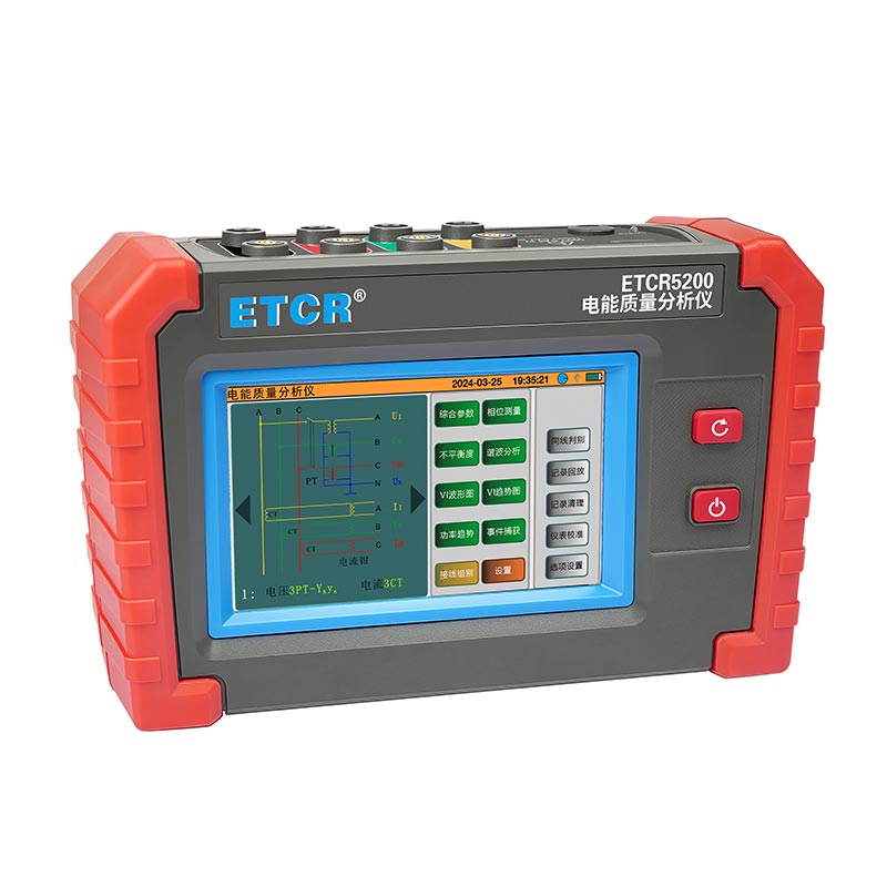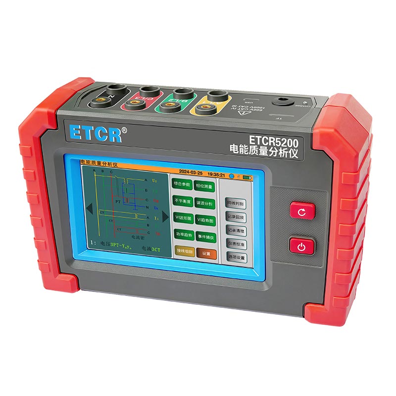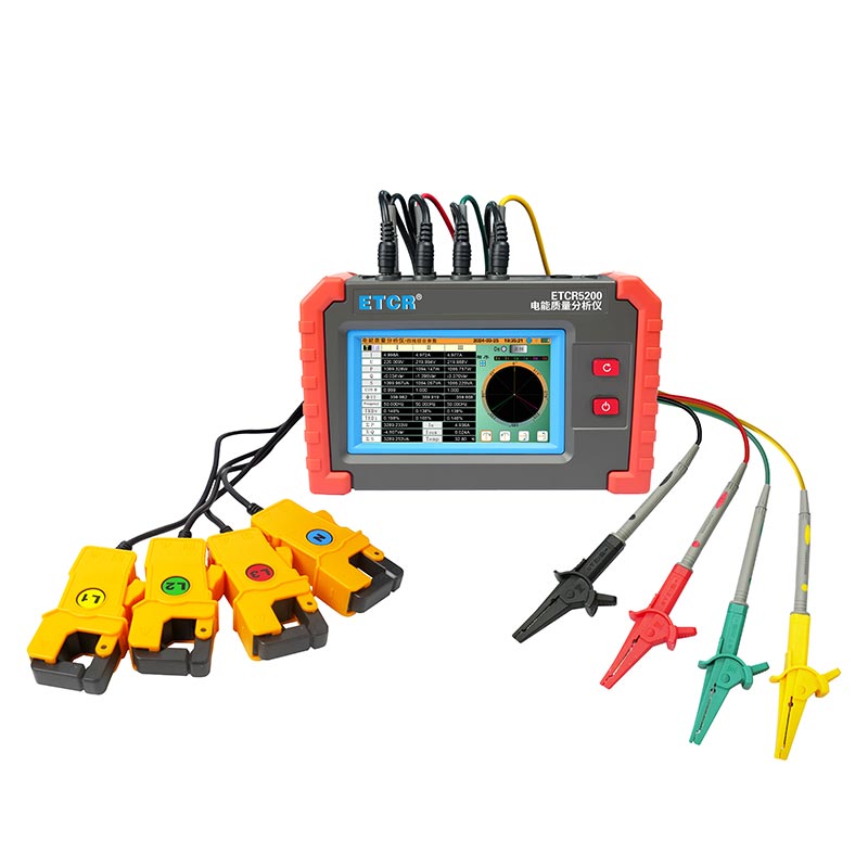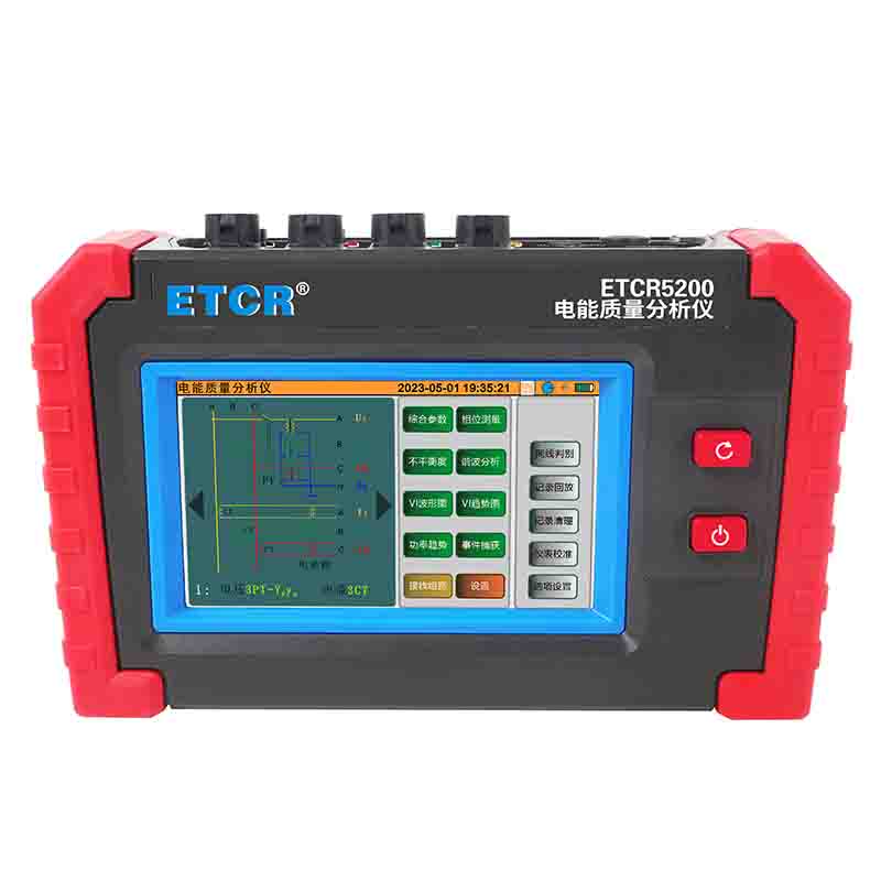 ETCR5200迷你型電能質(zhì)量分析儀又稱電力質(zhì)量分析儀、電力參數(shù)測(cè)試儀、諧波分析儀,是一款專為現(xiàn)場(chǎng)測(cè)試三相電能質(zhì)量的高精度綜合型測(cè)試儀器。儀表具有智能化、功能完善、人機(jī)操作簡(jiǎn)潔、中英文雙語操作界面等特點(diǎn)。儀表采用5寸觸摸彩屏、體積小重量輕、攜帶方便,可選配多款電流鉗。儀表可同時(shí)測(cè)量4路電流(ABC三相及中性線電流),3路電壓、三相不平衡度、有功功率、無功功率、視在功率、諧波比、總諧波失真度等;顯示電流電壓的實(shí)時(shí)波形、相量圖;動(dòng)態(tài)捕捉電壓電流瞬時(shí)變化,監(jiān)測(cè)啟動(dòng)電流,監(jiān)測(cè)各電力參數(shù)并生成告警列表,長(zhǎng)時(shí)間記錄測(cè)試數(shù)據(jù)并生成趨勢(shì)曲線圖等功能。適用于電力、石化、冶金、鐵路、工礦企業(yè)、科研院校、計(jì)量部門等。