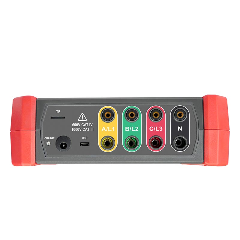 ETCR5200迷你型電能質(zhì)量分析儀采用5寸觸摸彩屏顯示,用不同顏色區(qū)別顯示各相的參數(shù)、波形圖、相量圖、諧波比圖,使用戶可以更高效更直觀地了解電網(wǎng)參數(shù)狀態(tài)。通過USB通訊接口及上位機(jī)軟件,將存儲(chǔ)數(shù)據(jù)上傳電腦繼續(xù)數(shù)據(jù)分析。