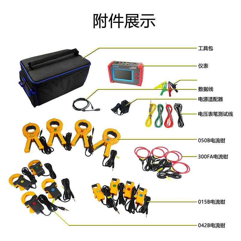 電流鉗規(guī)格(選配) | 015B電流鉗:17mm×18mm 042B電流鉗:Φ40mm 050B電流鉗:Φ50mm 200F柔性電流鉗:Φ200mm |