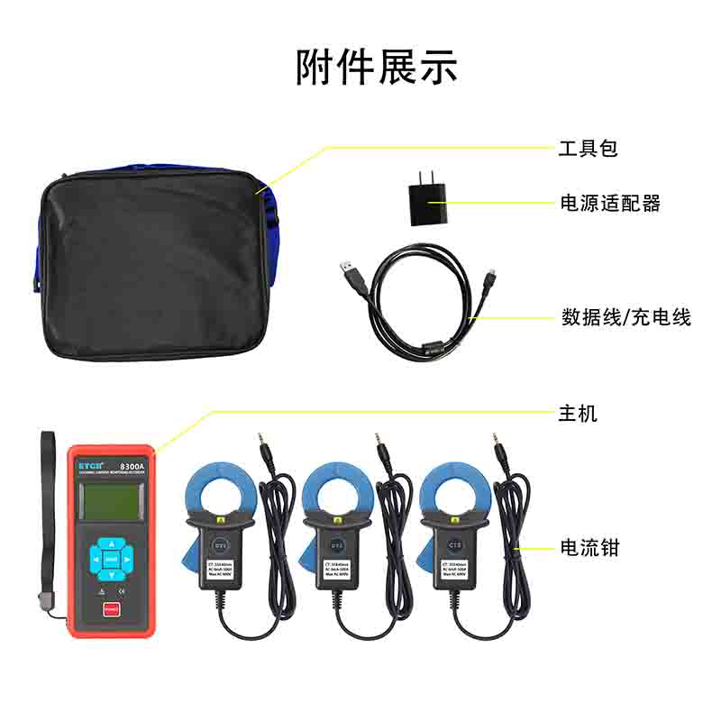 ETCR8300三路鉗形漏電流記錄儀 | Φ30mm | AC 0.00mA~20A | 7天 | 1秒-99分鐘 | 20萬組 | 鋰電池 | 有 | |