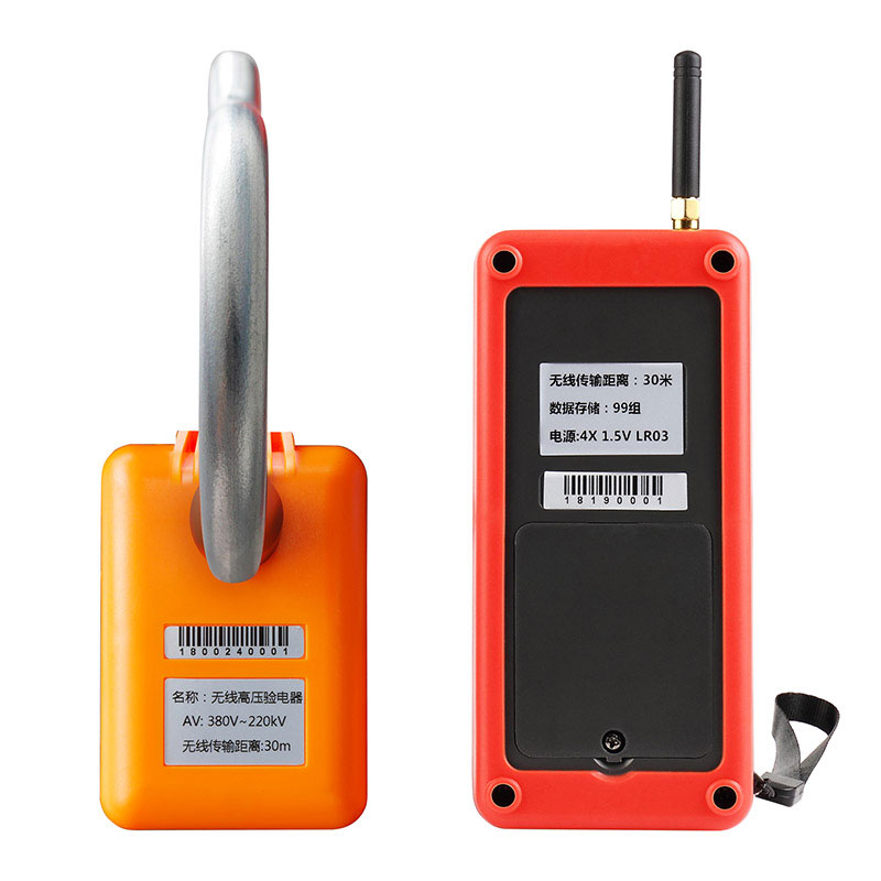 1、用絕緣桿將探測器掛在高壓線路上,即可驗電并顯示高壓線路電壓及電流。