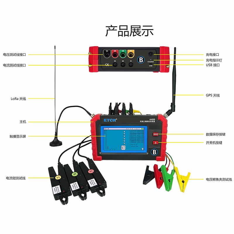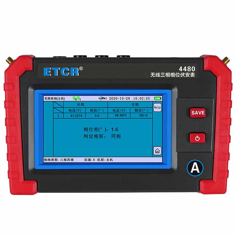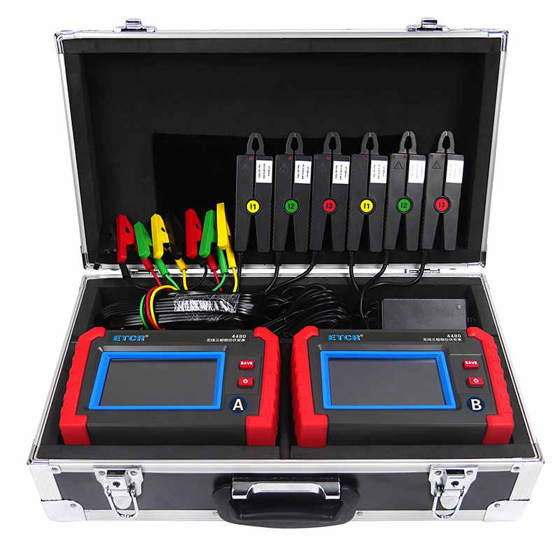 ETCR4480無(wú)線三相相位伏安表又稱(chēng)三相電力參數(shù)測(cè)試儀、CT負(fù)荷測(cè)試儀、PT負(fù)荷測(cè)試儀,用于變電站內(nèi)不同位置的三相電力參數(shù)測(cè)量、PT無(wú)線核相、PT負(fù)荷測(cè)試、CT負(fù)荷測(cè)試、三相不平衡度測(cè)試、諧波分析等。儀表由2臺(tái)手持終端、6個(gè)電流鉗、2組電壓測(cè)試線等組成,2臺(tái)手持終端具有無(wú)線通訊及GPS通訊,可互設(shè)為主機(jī)或從機(jī),實(shí)現(xiàn)同步測(cè)量變電站內(nèi)不同位置之間電流、電壓、相位等參數(shù)。