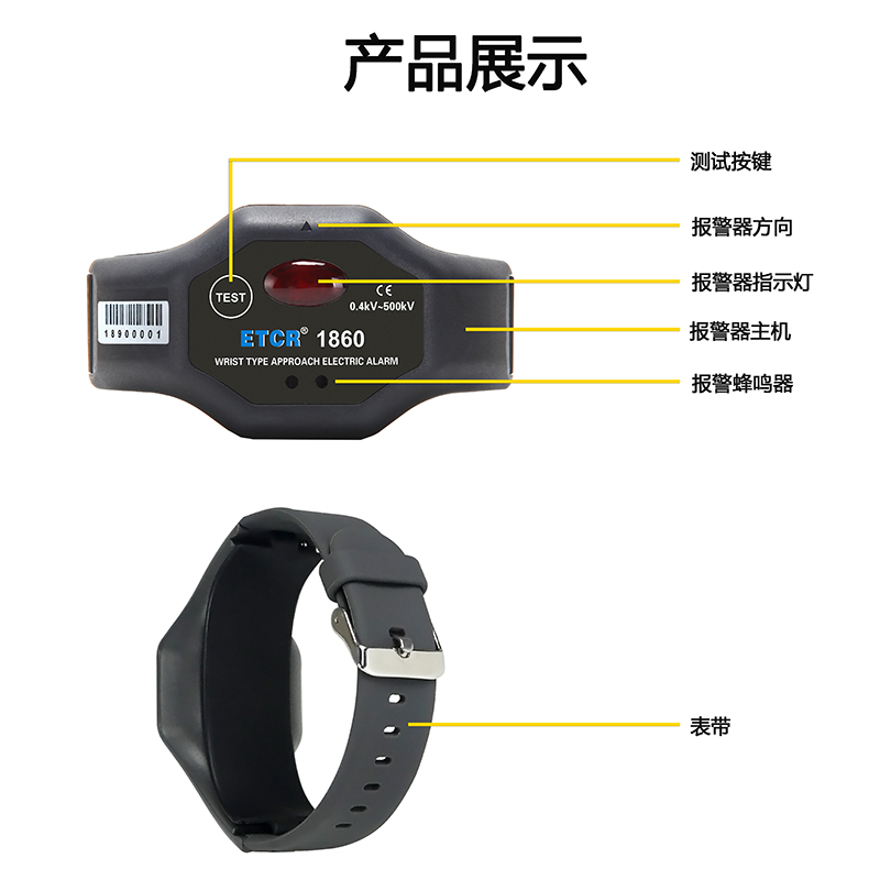 ETCR1860系列手腕式近電報警器有高壓報警(適用1kV以上)及低壓報警(適用1kV以下)兩款,采用非接觸感應技術,報警準確,省電耐用,待機時間長達12個月。報警器具有獨特的自動觸發檢測功能,確保帶電作業人員的安全。報警器廣泛應用于電力、鐵路、工礦企業等近電作業場所。