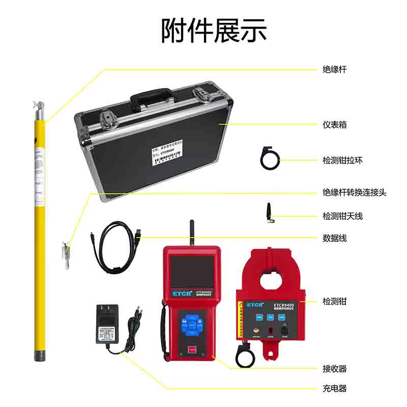 3、采用無線通訊方式,主機可遙控檢測儀的閉合或張開,可查看鉗頭工作狀況,讀取電流數據。