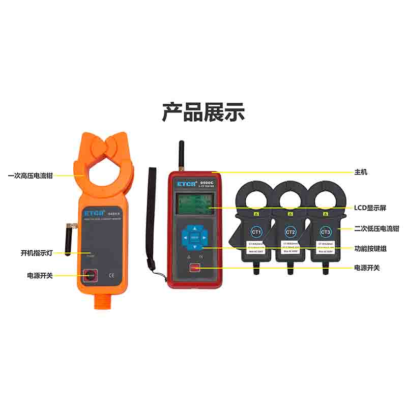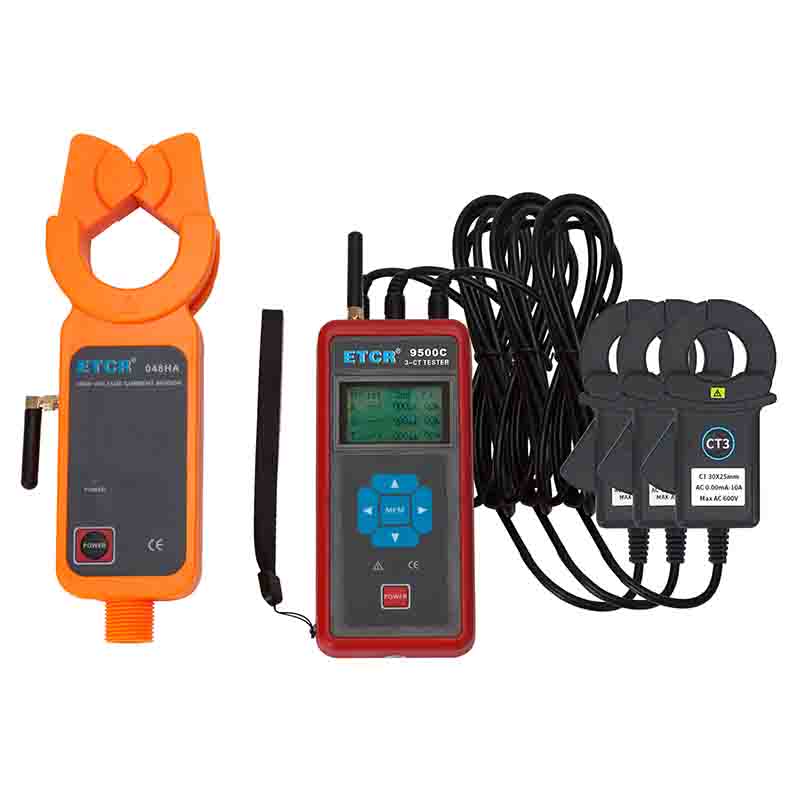 ETCR9500C-030三路無線高壓CT變比測試儀 | ≤35kV | 0.0A ~800A | 0.0mA~10A | 100m | 1~9999 | -- | 同時測量3路二次電流 | |