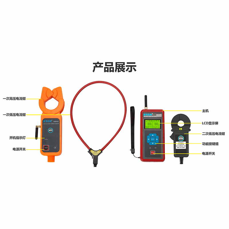 ETCR9500C-030三路無線高壓CT變比測試儀 | ≤35kV | 0.0A ~800A | 0.0mA~10A | 100m | 1~9999 | -- | 同時測量3路二次電流 | |